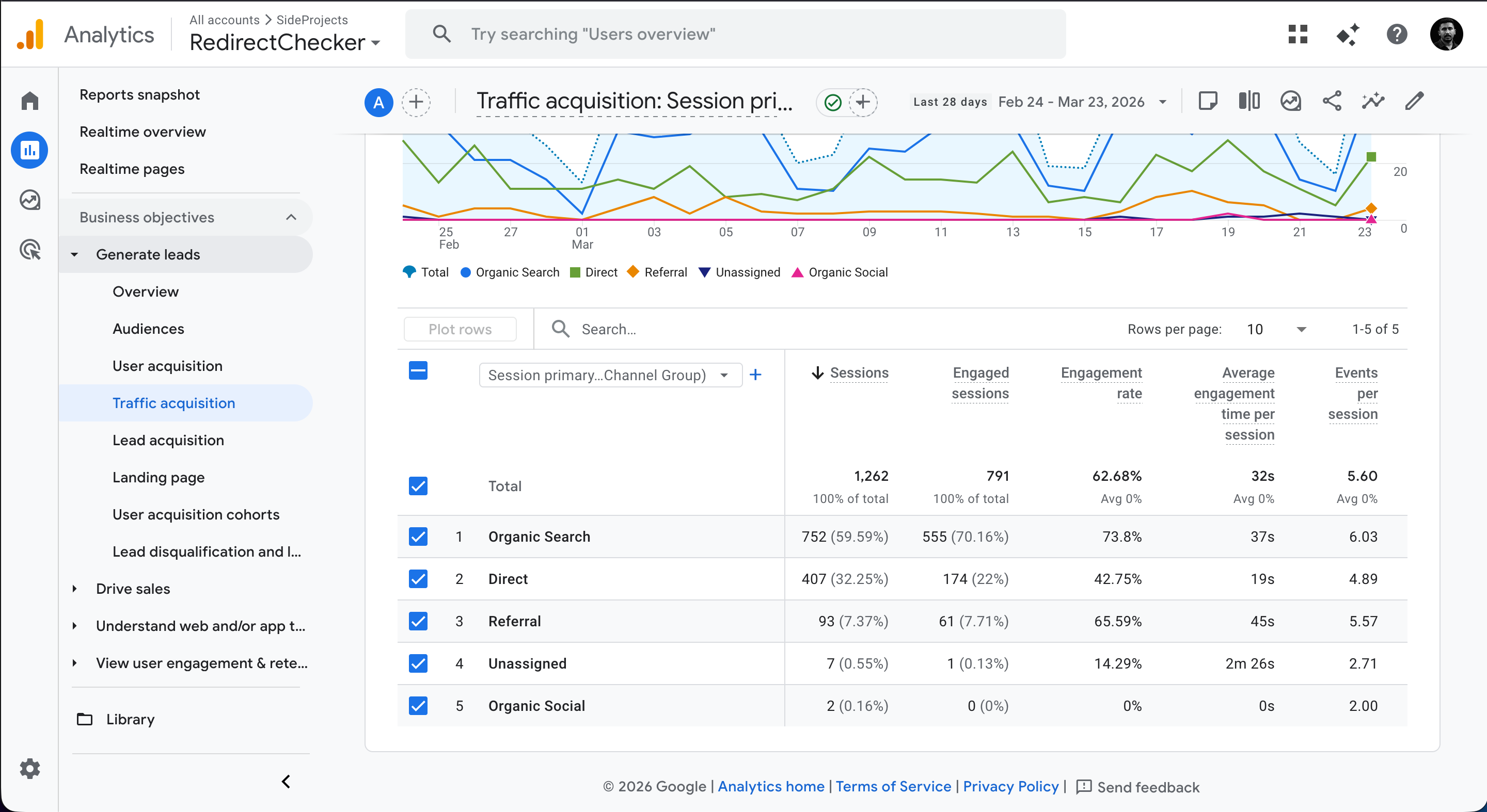 | Organic Search | 2,896 | 51.5% |